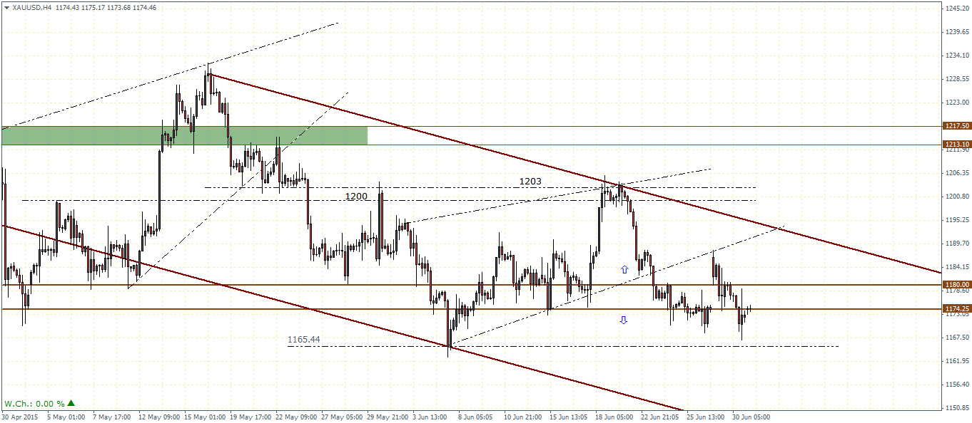 On the H4 charts, the price action is more evident as we notice a more recent break down from a rising wedge pattern, which also saw a brief retest to 1185 before declining lower. With the lower support at 1180 – 1174 being broken, we could expect the current consolidation at these levels to last for a little while longer before the downside strength sets in. On the H4 charts, the price level of 1165 is important to watch as a close below this level could indicate the onset of a fresh leg of selling, which could eventually see Gold prices drop to 1071 in the longer term.