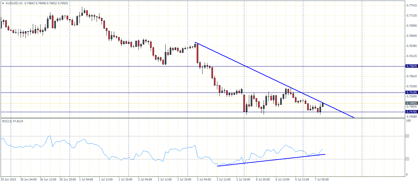 The Aussie was mostly muted to the RBA’s decision after posting session lows below 0.74705. The intraday chart shows a possible extension to the bullish momentum after the hourly charts posted a bullish engulfing candle near the lows. Price is also trading close to the falling trend line and a break of this trend line could indicate further rally in the near term. Potential resistance levels come in at 0.75195 and 0.7587, while a close below 0.74705 could see the Aussie fall to new lows against the Greenback. However, the bias to the upside is strengthened by the fact that the lows near 0.74705 was not confirmed by the RSI, which instead has posted higher lows, thus pointing to a bullish divergence.