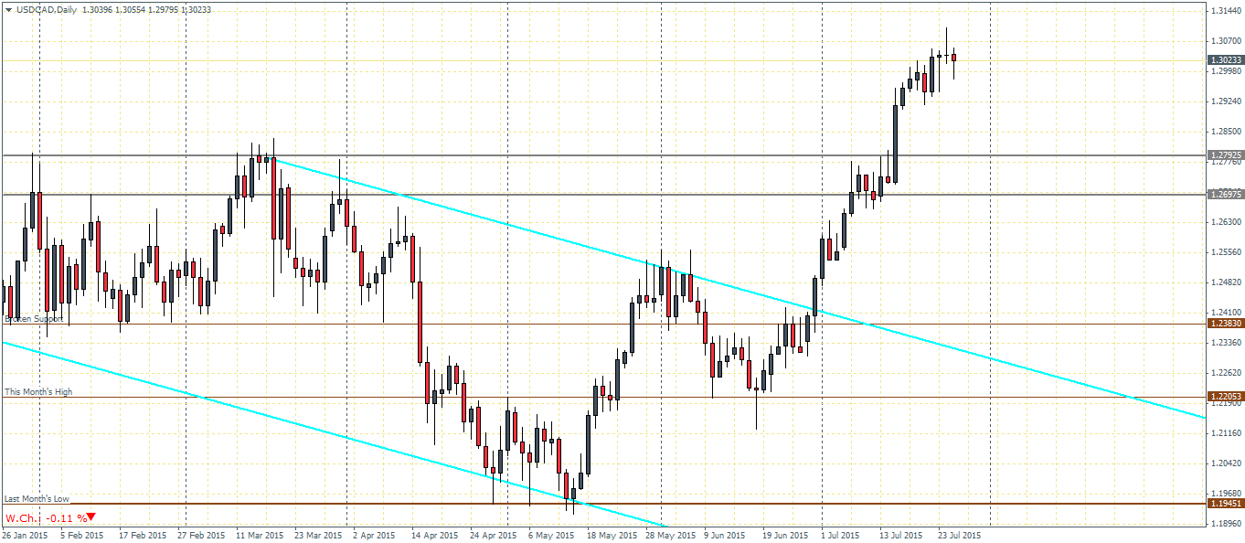 US Dollar Index (96.75): The US Dollar Index managed to post monthly highs near 98.15 but saw a quick reversal from these highs. Price action is currently trading near 96.9 level of support. Failure to cap the declines here could see USDCAD test the next lower support near 95.5 through 95.35.