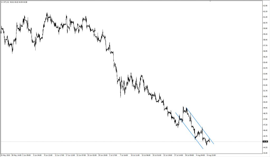 ** The following chart for the oil spot price ; the difference between chart price and future contract price ( CL_5U) is 0.20 .However , same analysis applied on both.