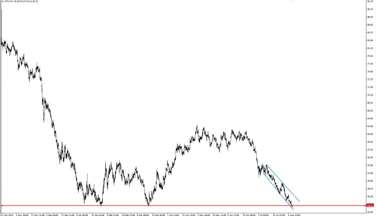 ** The following chart for the oil spot price ; the difference between chart price and future contract price ( CL_5U) is 0.20 .However , same analysis applied on both.