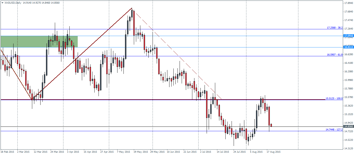 Silver prices have been weaker this week, trading -2.59% for the week after prices made a high near 15.63 late last week. Silvers prices promptly fell back to the identified support level at 14.95 – 14.85. If this support holds, Silver could potentially stage another rally in an attempt to test the 15.69 level of resistance which missed last week by a few points. To further the view to the upside, Silver is showing a strong hidden bullish divergence to the RSI at the current level of support. The RSI has posted a lower low while prices have posted a higher low in comparison to the previous lows at 14.46 in early August. Therefore a successful test of support could see Silver rally back to 15.69.