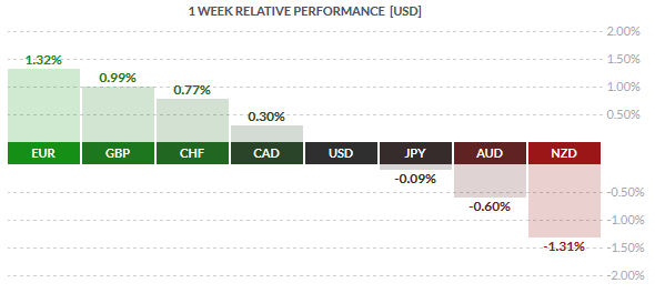 The Aussie and the Kiwi currencies were the worst performing last week led by the Yuan devaluation which dragged down with it most of the other Asian currencies as well. For the week, the Kiwi lost close to -1.31% followed by the Aussie dollar which was down -0.6%. Besides the Yuan devaluation, economic data from New Zealand continued to print weak numbers putting pressure on the Kiwi on all sides.