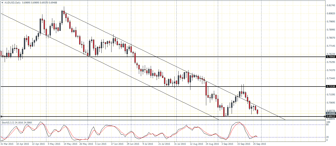 The Aussie is trading below the 0.695 marking the lows near 2008. The two week rally seen between 6th and 13th September failed to offer any support as AUDUSD reversed its gains near 0.7 handle and turned lower.
