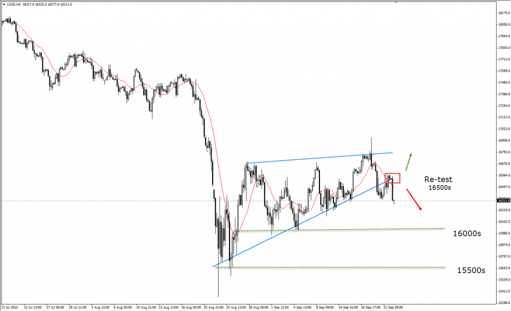 From Technical point of view , I do see the market has broken and retested that pattern and the downward pressure is the highly probable scenario, however , this is under one condition which is that the Dow Jones is traded below 16200s , Then we will wait a support test @ 16000s ,15500s respectively.