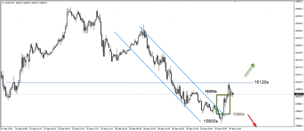 Dow Jones still trading in high volatility range, and as we see from yesterday chart and today chart , the market in a bearish era .We do expect the levels of 15,500s as the Mid-Term Target ( Higher probable scenario , probability = 65% ).
