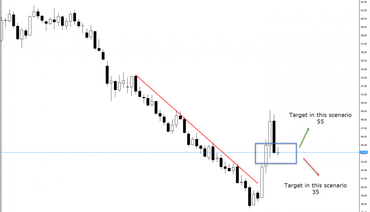 The levels of 58/57 represent a major support level by breaking those levels the market would re-test the support of 52 (highest expected scenario) but should break one of the critical levels that represented by support level 55.50 ( Penetrated it already ! ). Finally, the market is not priced any geopolitical risks’ development – any type for that risk would have a major impact on the prices, or a major change of US shale oil production as well.