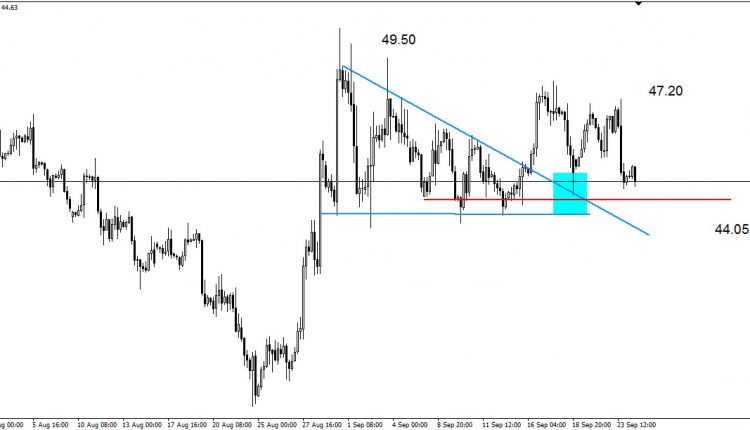 The market not keeping its stability above 46.8s, the price bounced strongly to the downside after testing 46.80s level, to approach from the first support 44s.