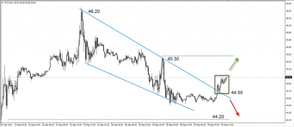 For oil we can expected the coming move as long as the market within the shown triangle (Symmetrical Triangle) That Triangle is shown on yesterday short , however , The shown chart is an analysis for short-time Interval ( 15 minutes Chart. ) . The major upper resistance at 47s and the lower band 44s. So, be neutral till we get more information and breakouts attempts.
