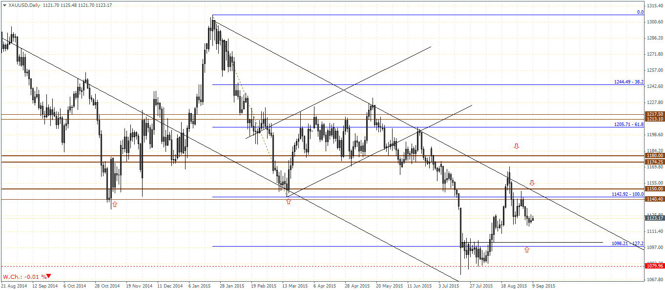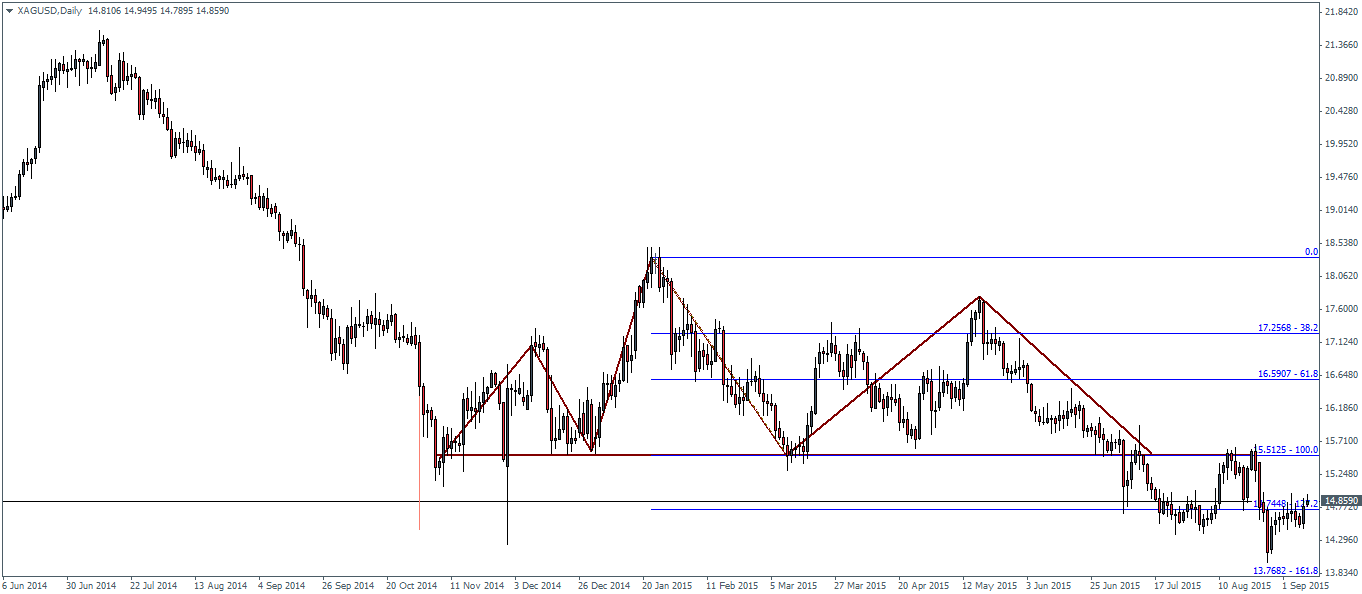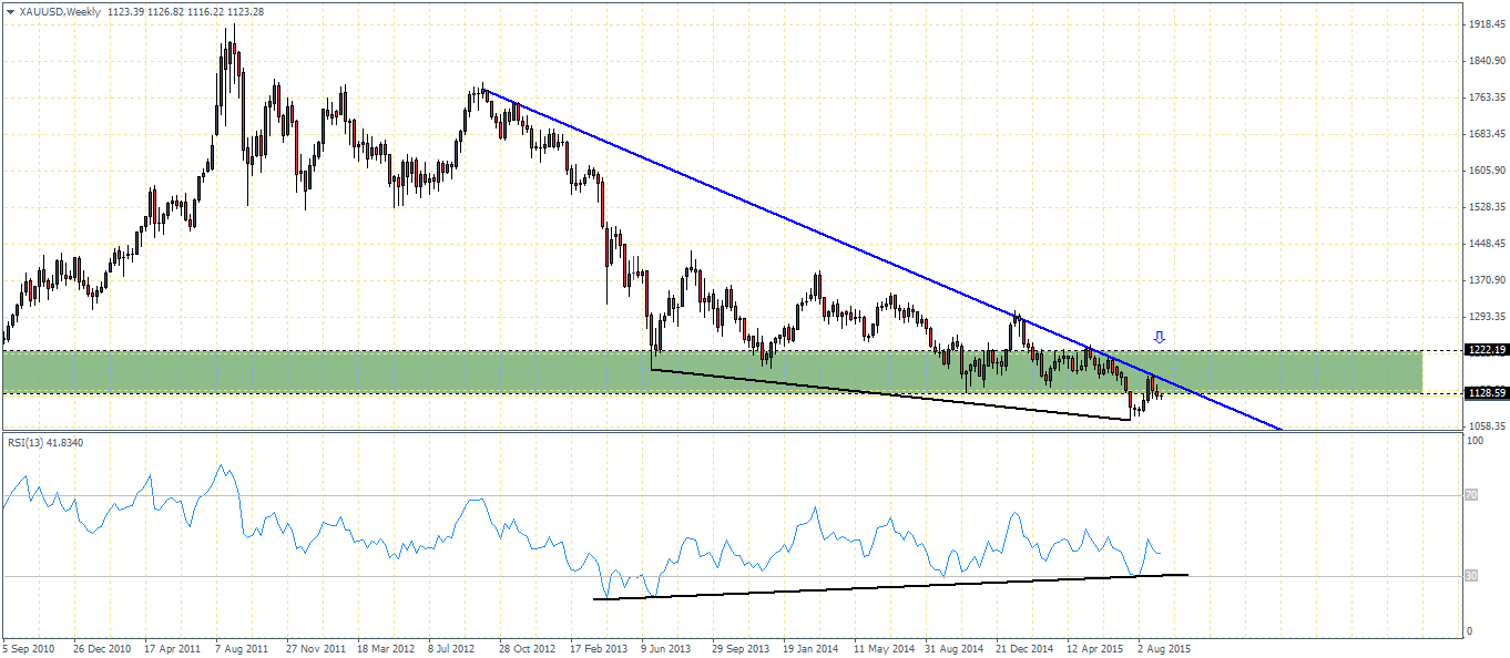 On the weekly chart, the bullish divergence is starting to get more evident as the RSI has failed to confirm the lows in Gold. A potential correction is very likely which could see Gold prices eventually rally to the $1220 region of support to establish resistance. Price action in Gold, on the weekly charts is also trading below the falling trend line and could possibly point to a break of the falling trend line as well.