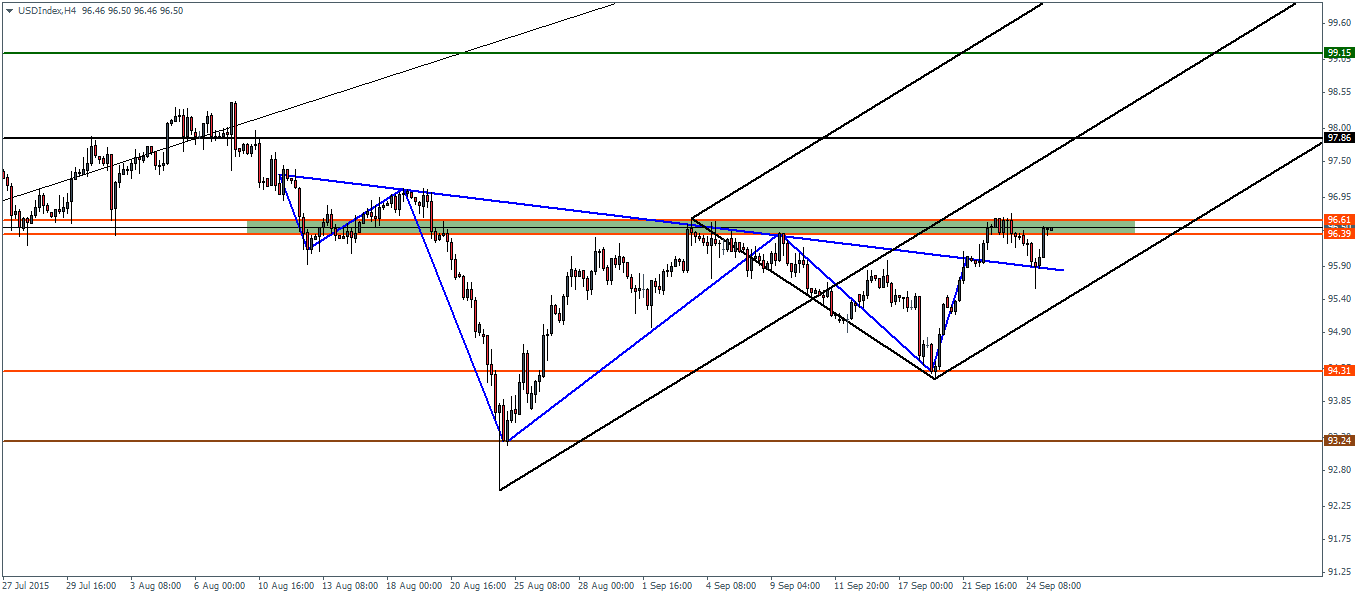 On the H4 time frame, a close above this resistance will clear the way for a test to 97.86 level of resistance. Plotting the median line we can see that prices have a lot of room for the rally to the upside and any possible dips should see the region of 96.61 – 96.4 being tested for support. In such an event, this level could attract a lot of buyers which could eventually push the US Dollar Index higher. In the unlikely event that the resistance holds, the US Dollar Index could find support near the dynamic neckline of the inverse head and shoulders pattern followed by a break out which could be confirmed when prices trend outside the lower median line. Support to the downside comes in at 94.31 followed the August 24th lows of 93.24.