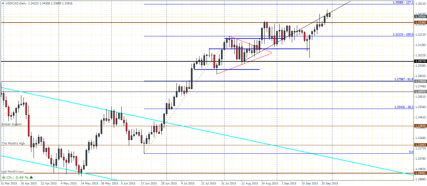 USDCAD (1.339): USDCAD continues to tread higher followed by the breakout from the bullish pennant pattern. Prices briefly fell to test the support near 1.309 before managing to break the previous resistance at 1.3336. Plotting the minor trend line previously, a bearish candlestick coincides with the trend line, however with support at 1.3336, USDCAD remains biased to the upside. A break and a potential retest below 1.3336, is required in order to expect any decent correction in USDCAD. To the upside, the bullish pennant indicates further rally which will see a test to 1.3508 followed by the final measured target of 1.3884.