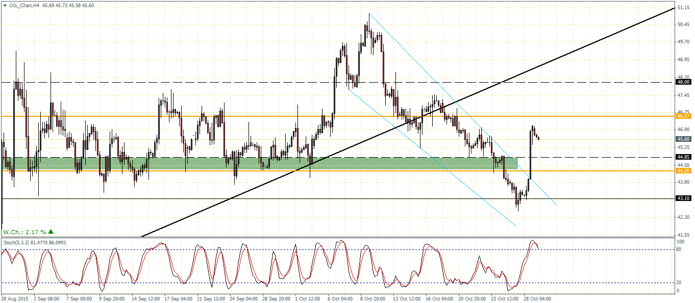 Crude oil prices saw a bullish day yesterday with prices gaining with over 6% gains for the day. WTI Crude oil futures settled at $46.14 yesterday as two separate reports helped pushed prices higher. The API reports showed that production was starting to decline on account of lower prices and has put pressure on the high cost producers of Oil such as Shale. While the markets speculated the potential cooperation between Russia and Saudi Arabia to cut down on production, the bets were scaled back ruling out the likelihood of any such cooperative measures to come to fruition between the two Oil producing giants. The weekly American petroleum institute’s report showed an inventory surplus of 4.1 million barrels for a third week in a row. However, Crude oil ignored the weekly EIA Crude oil inventories report which showed that commercial crude oil inventories increased 3.4 million barrels, while missing estimates of 3.7 million barrels and also down from 8 million barrels in surplus from a week ago.