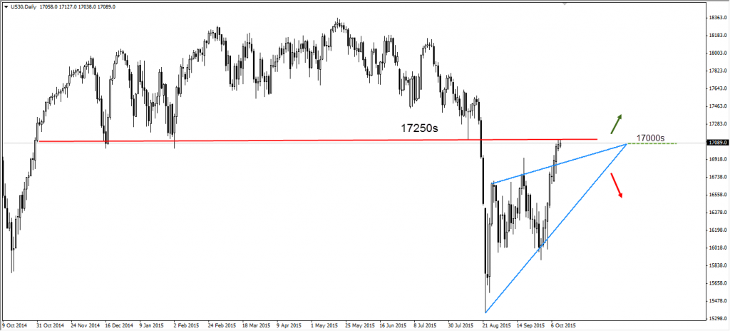 Dow Jones still trading in high volatility range, the market in a reversal to upward mode .We do expect now the levels of 17350 .