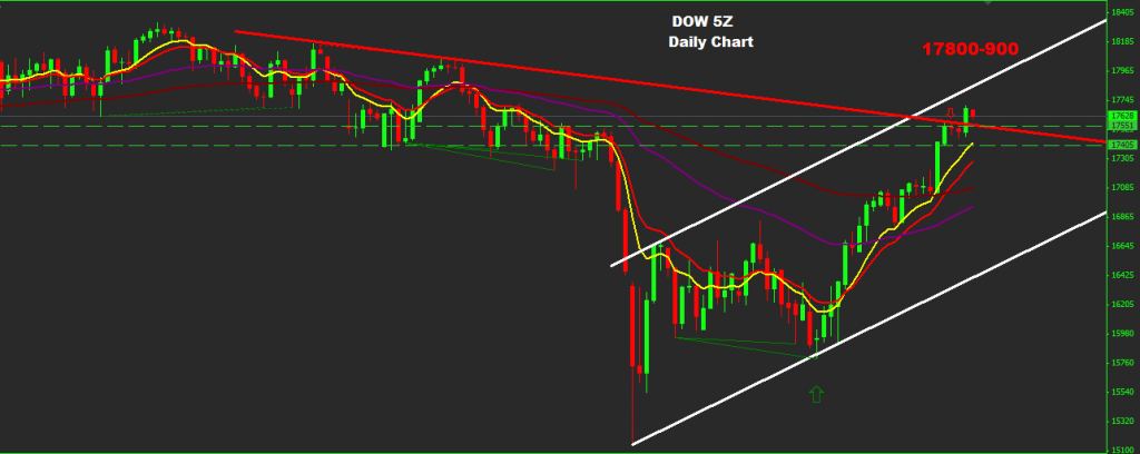 Dow managed to sustain uptrend movement for the last 4 weeks, while managed yesterday to break above 17550-95 indicting farther advance toward 17800-900 zone