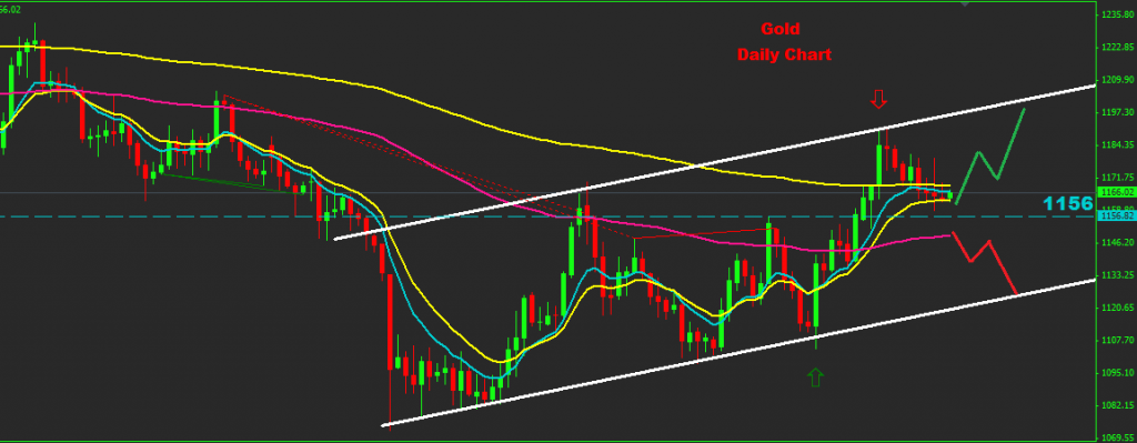 as we see over the chart, Gold still holding trades inside short-run uptrend channel where support level at 1156.