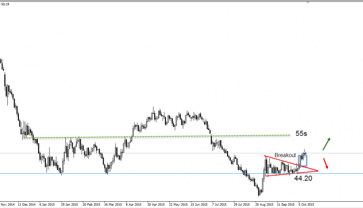 Failure descending triangle. However, the market confirmed for breakout of that pattern and break 49 level.