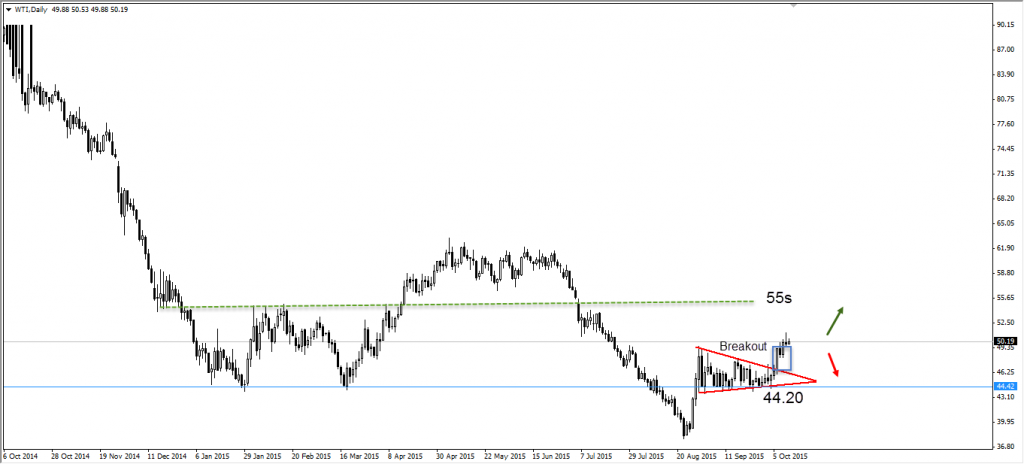 Failure descending triangle. However, the market confirmed for breakout of that pattern and break 49 level.