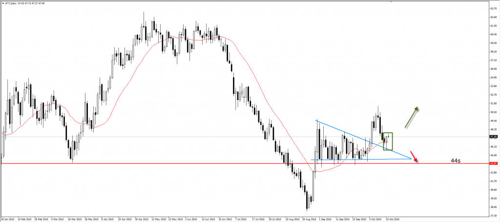 Failure descending triangle. However, the market confirmed for breakout of that pattern and break 49 level and now on the pullback scenario to re-test the broken pattern.