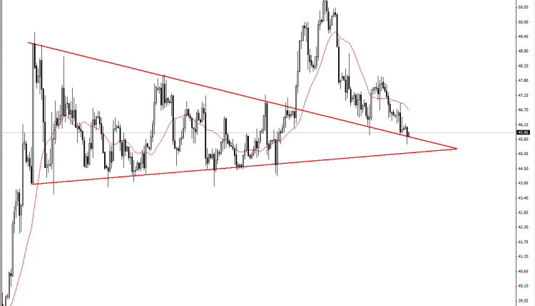 Failure descending triangle. However, the market confirmed for breakout of that pattern and break 49 level and now on the pullback scenario to re-test the broken pattern.