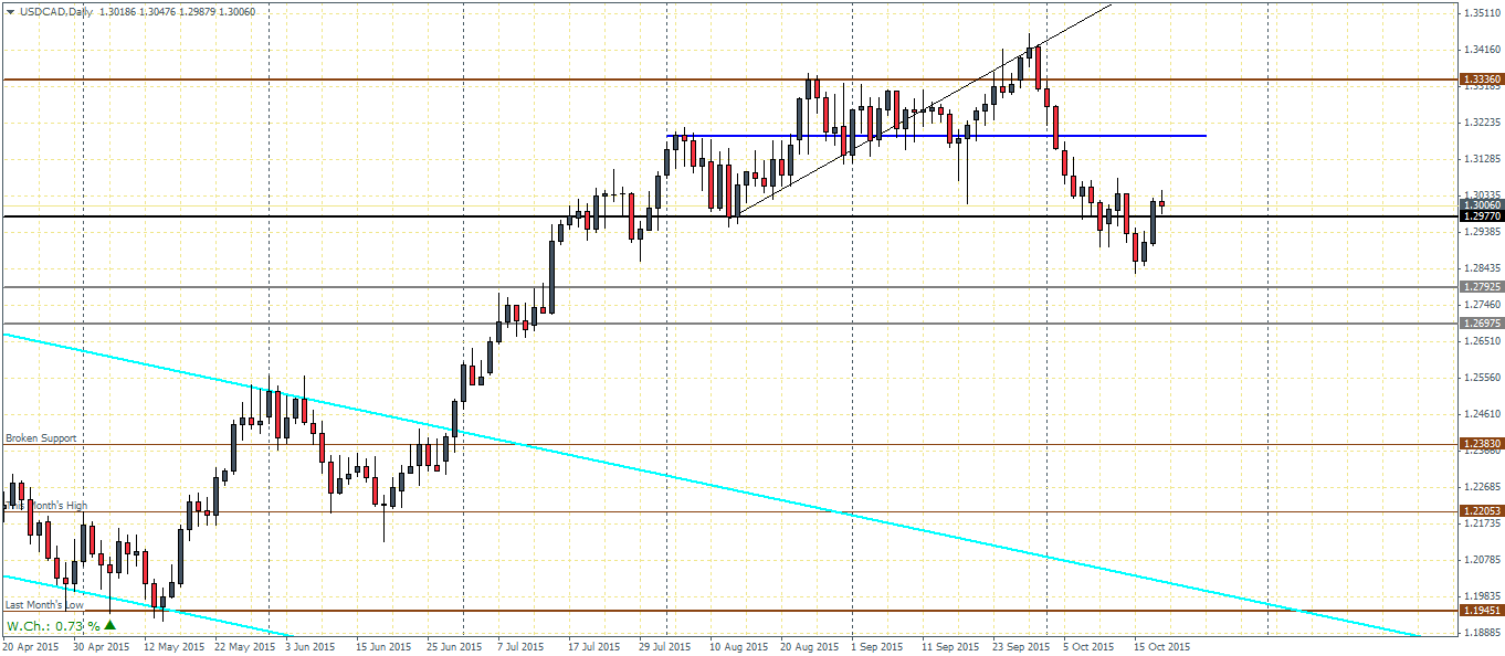 USDCHF (0.95): USDCHF has broken out from a bearish flag pattern which indicates a potential decline to the downside, towards 0.94 at the very least. Expect prices to rebound in the short term to retest the broken resistance at 0.955 before further declines lower. In the event USDCHF rallies above 0.955 we can expect a further rally to the previous highs at 0.965. Main support comes in at 0.93 region which marks the lower end of the major price channel as shown on the chart.