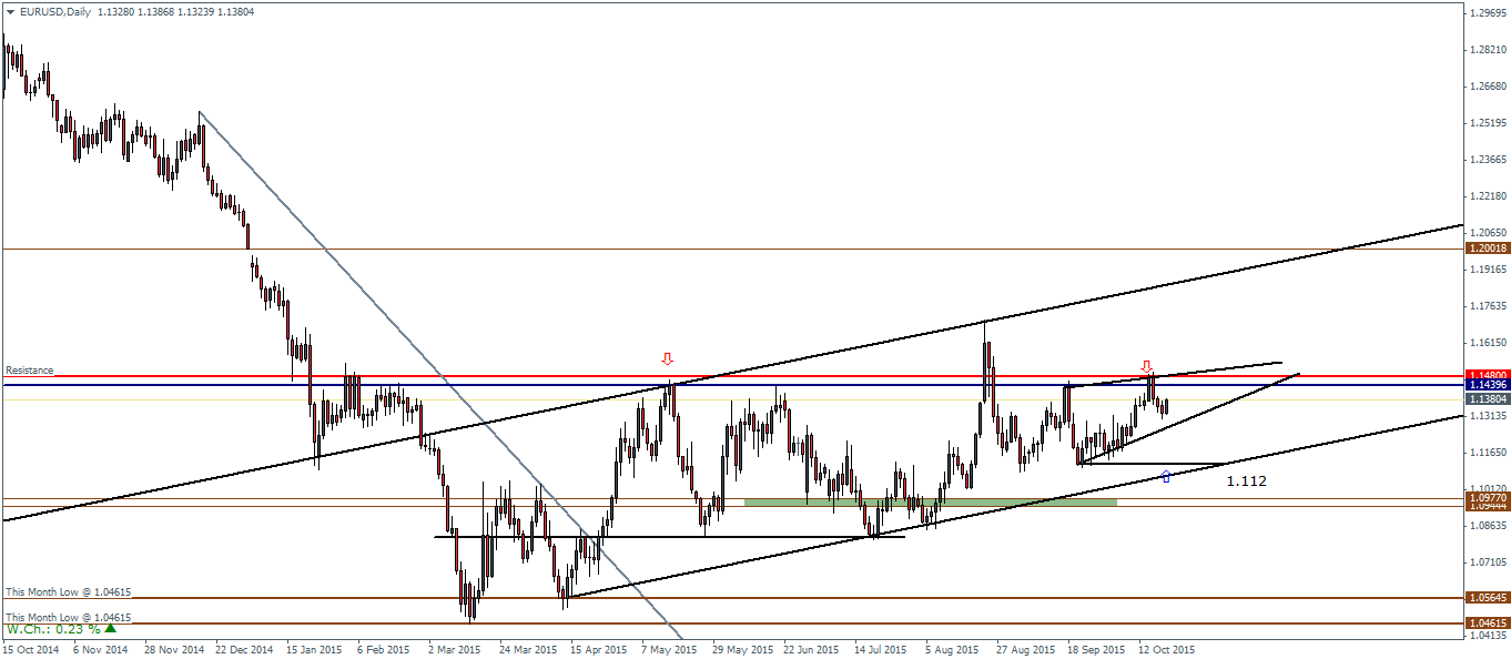 GBPUSD (1.548): GBPUSD has formed a hidden bearish divergence indicating a potential move to the downside also taken in consideration with the lower highs that has been formed in the Cable. Price action has recently broken out of the descending triangle/wedge pattern and the current rally could see a test to 1.5588 before a decline back to 1.5355 takes place, which will mark the retest of the wedge’s break out. The eventual target to the upside comes in for a potential retest to 1.5779 level in the medium to long term time frame. As long as prices are supported above 1.5215, GBPUSD remains poised to the upside for a test to 1.5779, which on a break out could see prices test previous highs of 1.61. To the downside, in the event prices break below 1.5345, the lower support at 1.5215 will be critical, which if gives way could see a potential decline lower invalidating the wedge pattern.
