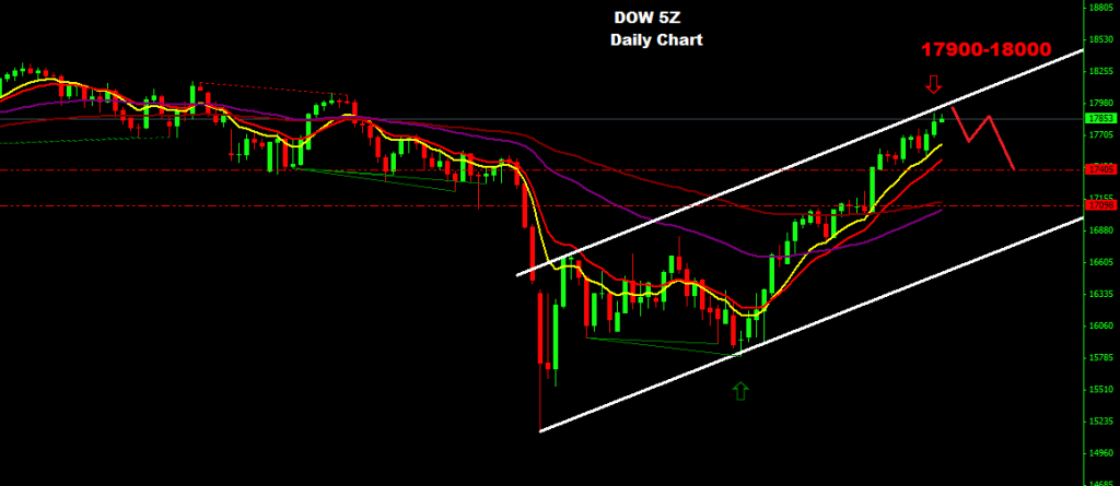 market still have room to deep the advance toward 17900-18000 zone , while as long as market holding daily close below 18000-100 we will expect another drop correction movement that may hit the market toward 17400-500 zone