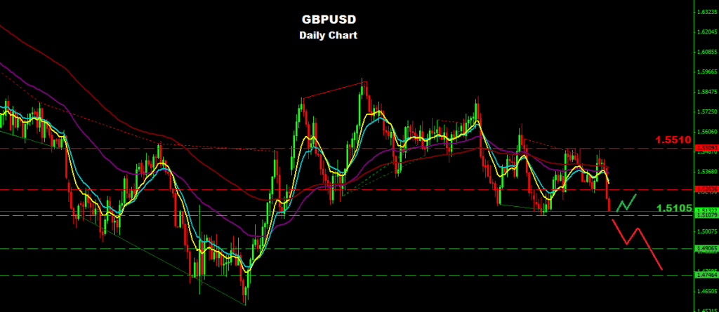 market facing support zone at 1.5105-10, as market holding above the pound may have chance for rebound correction toward 1.5240-60 zone, while below 1.5105 market will initiate new downtrend wave that will target 1.4905 and 1.4800