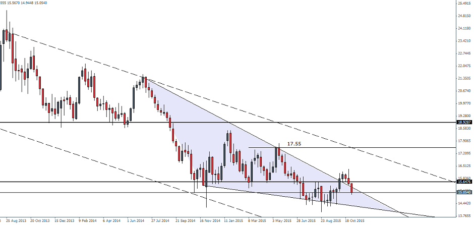 The new rising price channel shows resistance at 15.65 through 15.50 which could be tested if the trend line of the price channel manages to act as dynamic support.