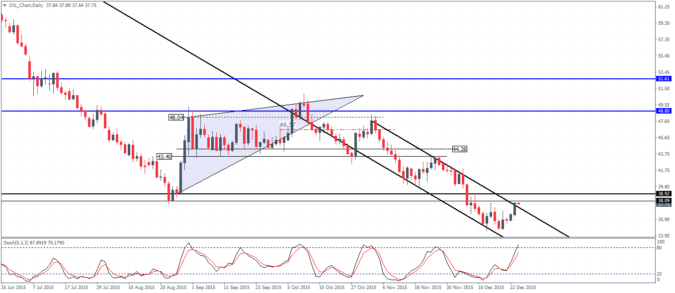 With the markets likely to see low trading volumes over the next week, Crude Oil prices are likely to trade sideways. While the longer term trend remains biased to the downside, the potential rallies to the untested resistance levels near $40 and above are likely to attract new sellers into the market.