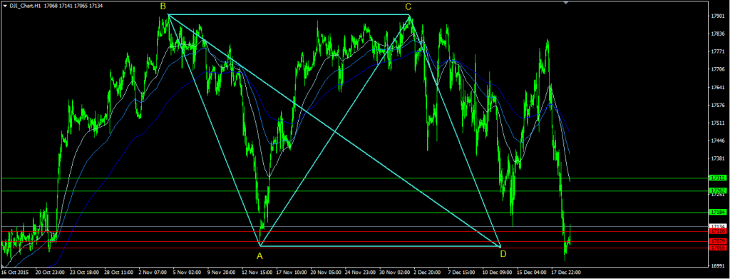 The above shown geometric pattern signals a probable rise of prices upon the completion of the patterns at D due to a prospective ABCD pattern pointing at the 17201 as the shortest term target.