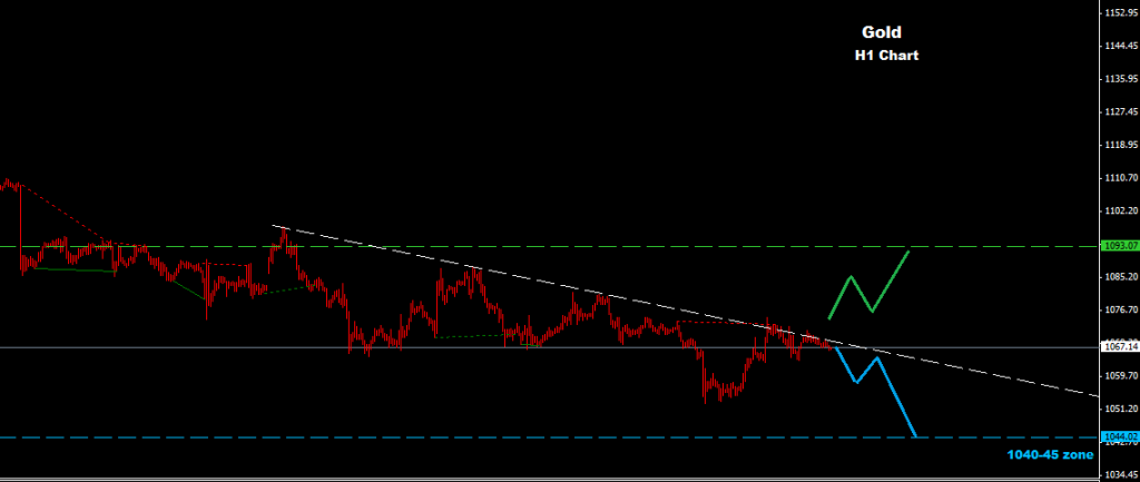 market now facing resistance at 1075 zone, where as long as market holding trades below this zone the downtrend will sustain toward 1040-45 zone