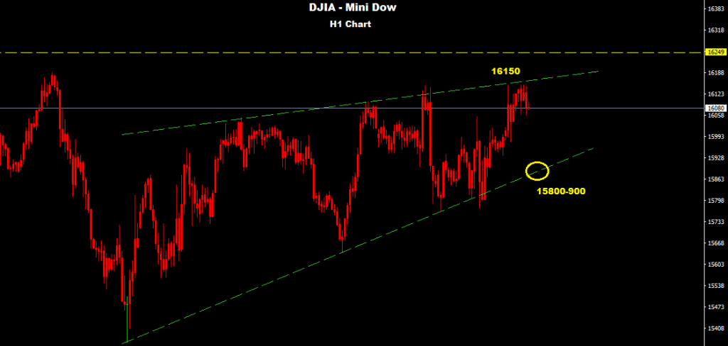 Dow managed to hit our first target 16150 while market still under effect of the rising wedge formation as we see over the chart