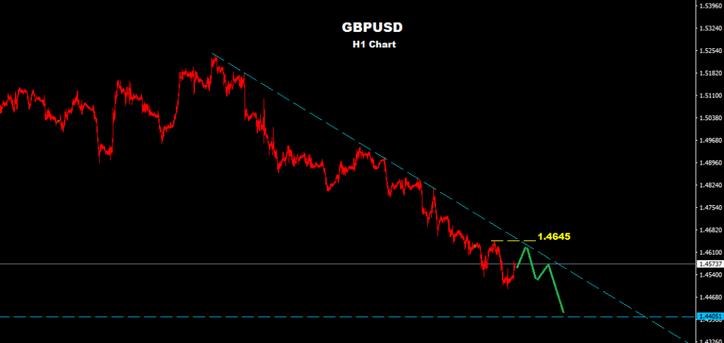 as we see over the chart British Bound still holding trades below downtrend line where first resistance at 1.4645