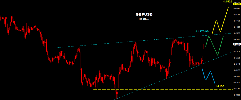 As we see over the chart market is building rising wedge formation where support at 1.4230 and resistance at 1.4370-90 zone