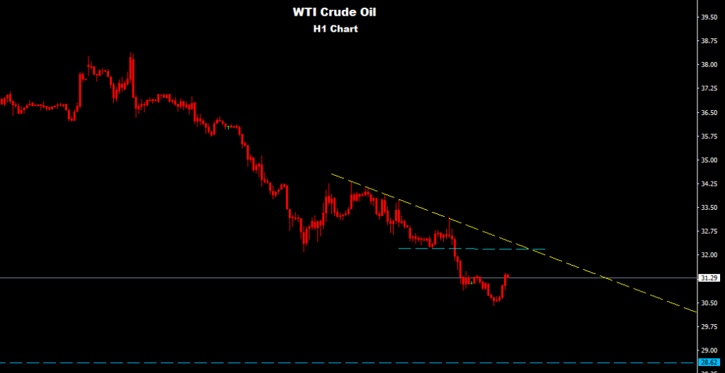 short-run showing continues drop pressure over Oil where market facing several resistance level starting from 31.50 , 32.25-35 , 34.25-35 as long as market holding trdes below those resistance levels the downtrend will sustain toward target 28.60.