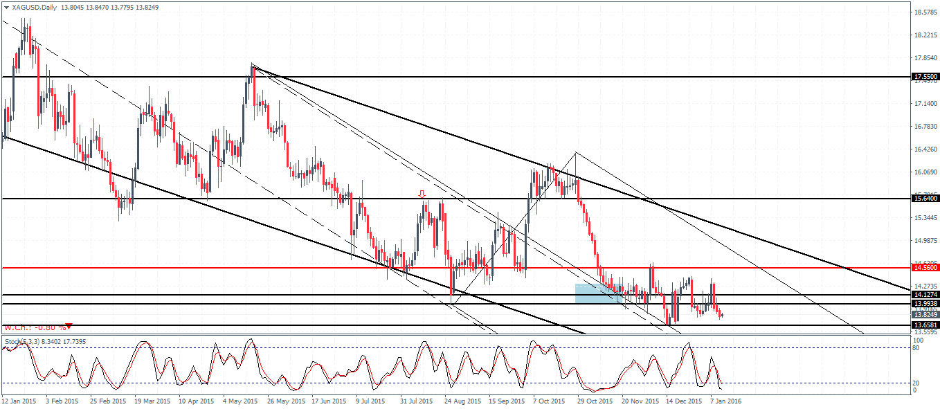 To conclude, Silver prices remains modestly biased to the upside at $13.65 support holds. A test to $14.56 could eventually see prices push higher towards $15.64 – $15.45 resistance. However, in the event of a break below $13.65 Silver could turn bearish and could potentially see new lows being posted.