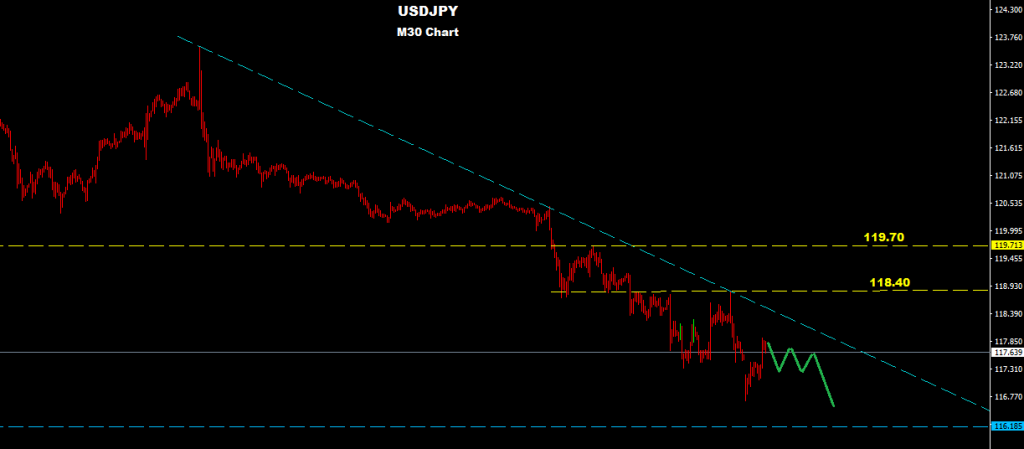 as long as market holding below 118.40 the downtrend will sustain where support zone at 115.60-116.20