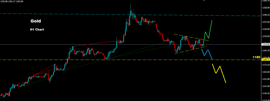 نجح السوق باختراق مستويات الدعم لنموذج المثلث قصير المدى والذي قد يساعد على عودة السوق للهبوط لاختبار منطقة 90-1180 مره اخرى