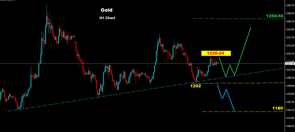 تحت مستويات 1202 فان السوق قد يضيف مزيد من ضغوط الهبوط والتي قد تنجح بالتوجه لاختبار منطقة 1180
