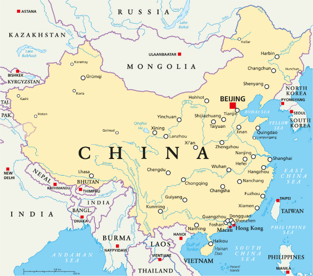 Tibet, Xinjiang province (home of the Muslim Uighurs), Inner Mongolia and Manchuria (a historical name given to the region north of North Korea that now consists of the Chinese provinces of Heilongjiang, Jilin, and Liaoning).
