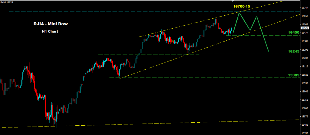طالما السوق مستمر بالتداول فوق مستويات 16450 فاننا سنتوقع استمرار تداولات المدى القصير داخل منظومة الوتد الصاعد