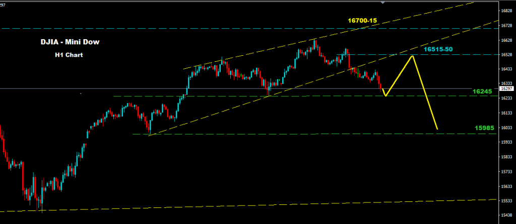 السوق الان يمتلك فرص التوجه لمنطقة تداول بين مستويات 16245 – 16550 قبل معاودة الهبوط نحو مستويات 16000