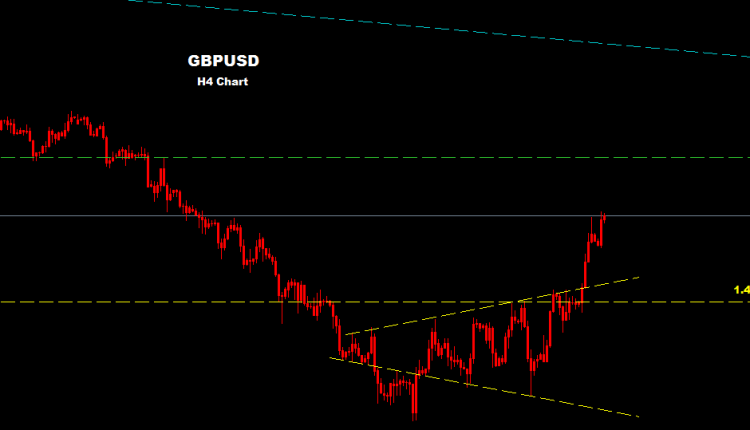 كما نرى على الرسم البياني فان السوق نجح باختراق مستويات المقاومه لنموذج المثلث فيما اتم السوق الاهداف الثانيه لدينا لمستويات 1.4525 مع استمرار الصعود نتيجة توجه السوق للبيع المكثف على الدولار الامريكي
