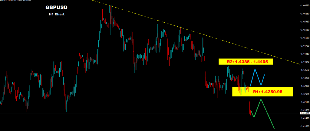 technical analysis 1.4250-95 as resistance zone where as long as market holding trades below this zone expect farther drop toward below 1.4070