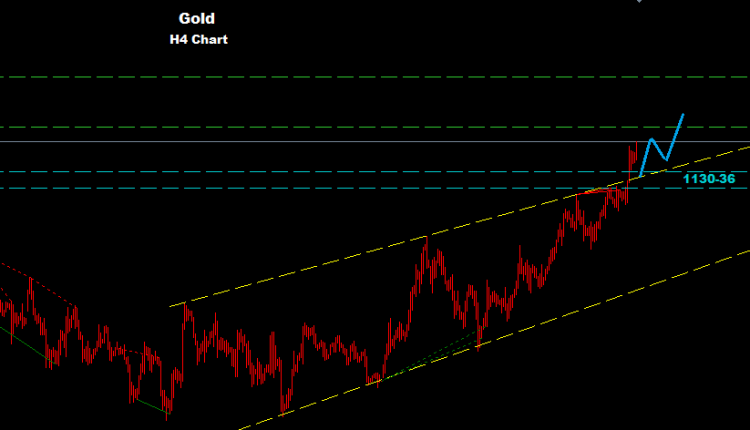 اذا ما جاءت ارقام سوق العمل بافضل من المتوقع لها فان السوق قد يتجه لحركه تصحيحيه هابطه فيما وطالما الذهب متماسك فوق مستويات الدعم 36-1130 فان الترند الصاعد سيستمر باتجاه منطقة 83-1175