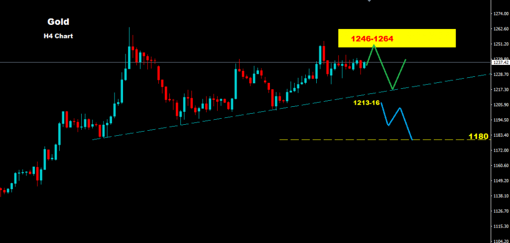 نظرة الاسواق حول تاثير الناتج المحلي الاجمالي على الذهب لا تزال غير واضحه فيما التحليل الفني يرى قابلية التقدم نحو منطقة 1246-1264