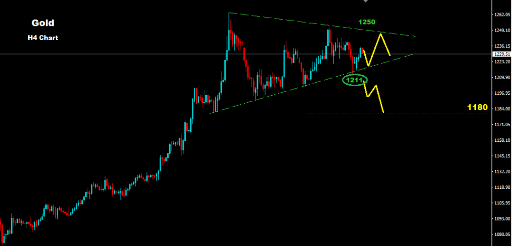 short-run: market showing trading zone between 1211 – 1250 , while market showing first resistance at 1238-43 zone where as long as market holding below this resistance another drop will be expected toward 1220 zone