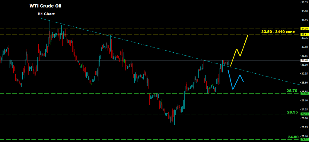 كما نرى على الرسم البياني فان السوق تمكن من ضرب اسعار فوق مستويات 31.50 مما يظهر قابلية السوق لمزيد من الارتفاع نحو مستويات منطقة 34.10 – 33.50