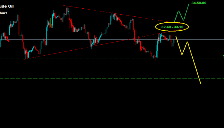 كما نرى على الرسم البياني , فان السوق نجح بالارتداد التصحيحي الصاعد بعض ارقام المخزون الامريكي يوم امس فيما لا يزال السوق يواجه منطقة مقاومه بين مستويات 32.40 – 33.10